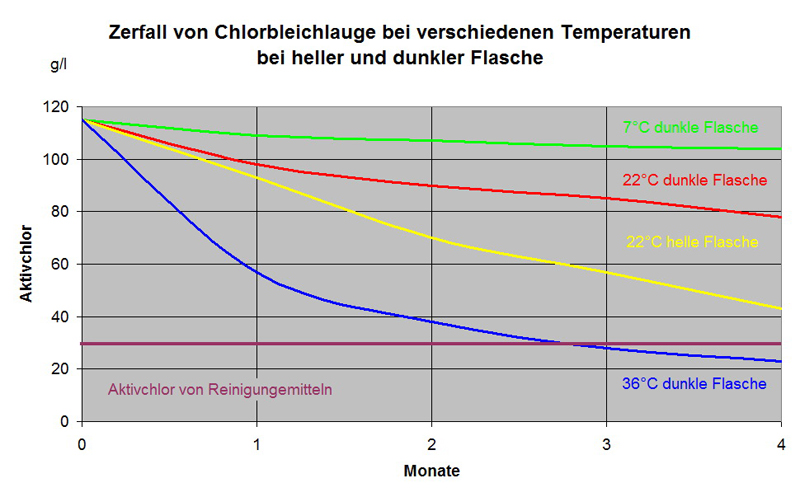 Konzentration (und Menge) nur bei der Wasseraufbereitung für. Ist die Chlorbleichlauge vielleicht nicht zu Überdosiert mit der . Konzentrationen Störungen der Abbauaktivität von Belebtschlamm möglich. Die obige Aussage der Firma kann die Anwender von Chlorbleichlauge (DanKlorix).